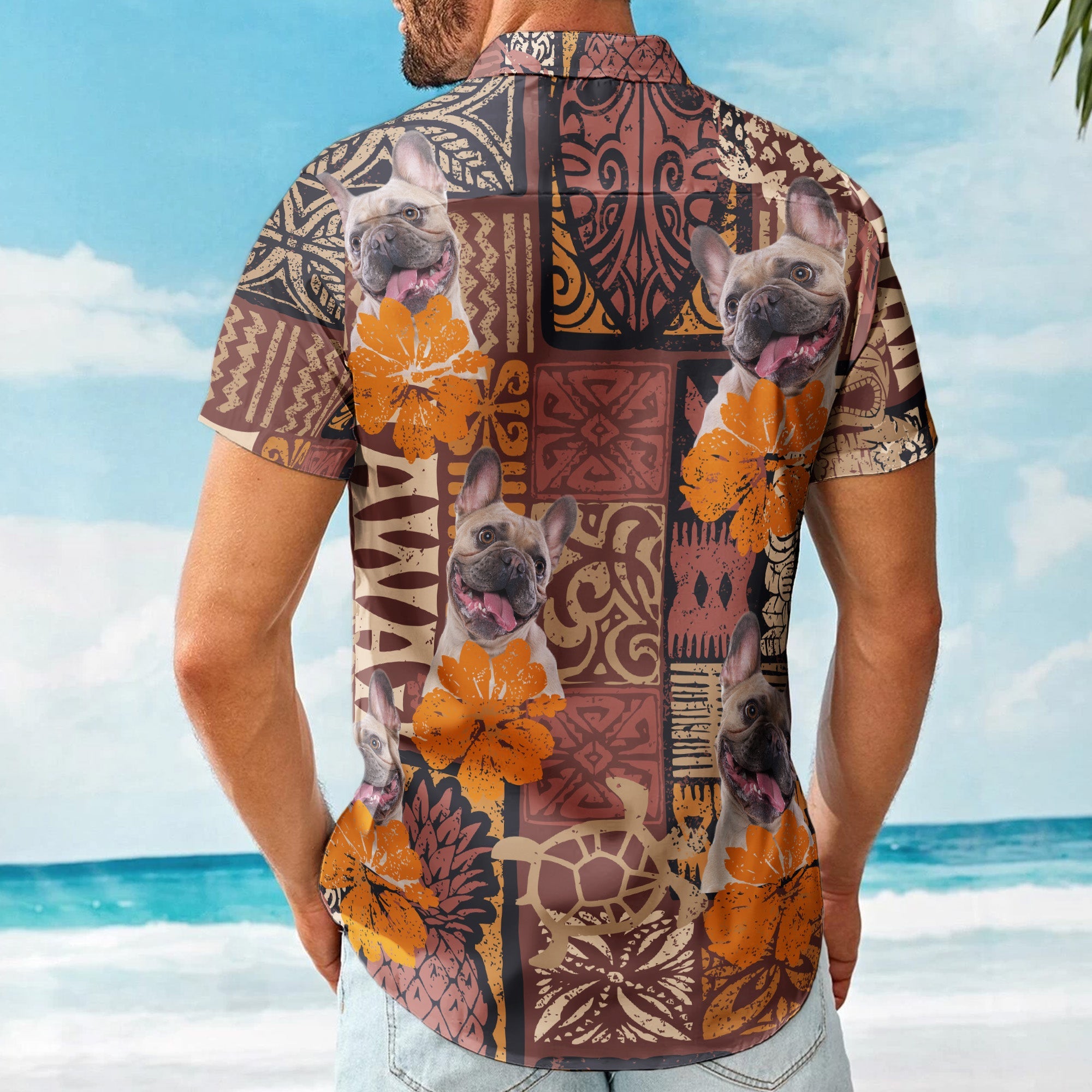 This unique button-up shirt adds a touch of humor and personal flair, making it an ideal choice for summer gatherings, Tiki bar nights, or beach outings. Showcase your individuality with a personalized Hawaiian shirt that captures the essence of summer, friendship, and pet love.
