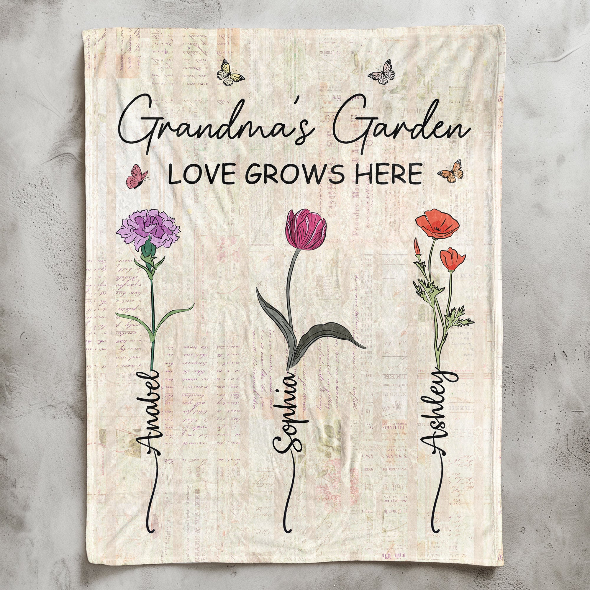 This personalized blanket with flowers and custom names is an excellent Christmas or Mother’s Day gift. It is also a perfect gift for a new grandma or a cute way to announce the baby’s arrival by showing the addition to the family tree. This blanket is sure to bring a smile to the recipient and become a cherished part of their memories.