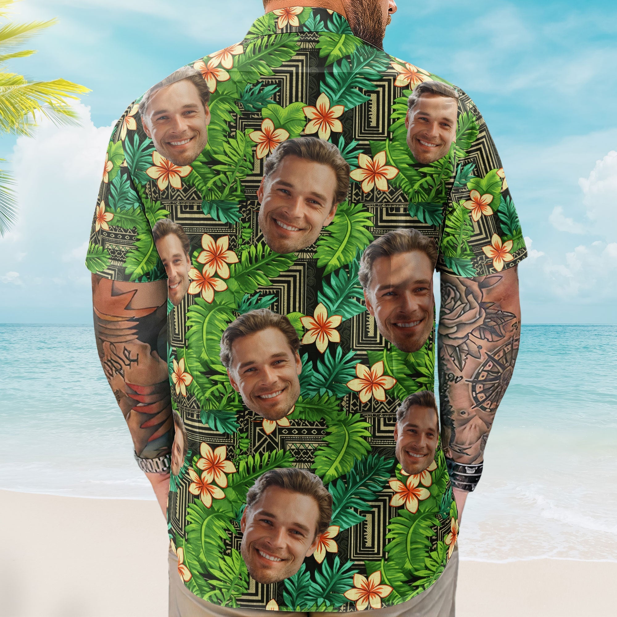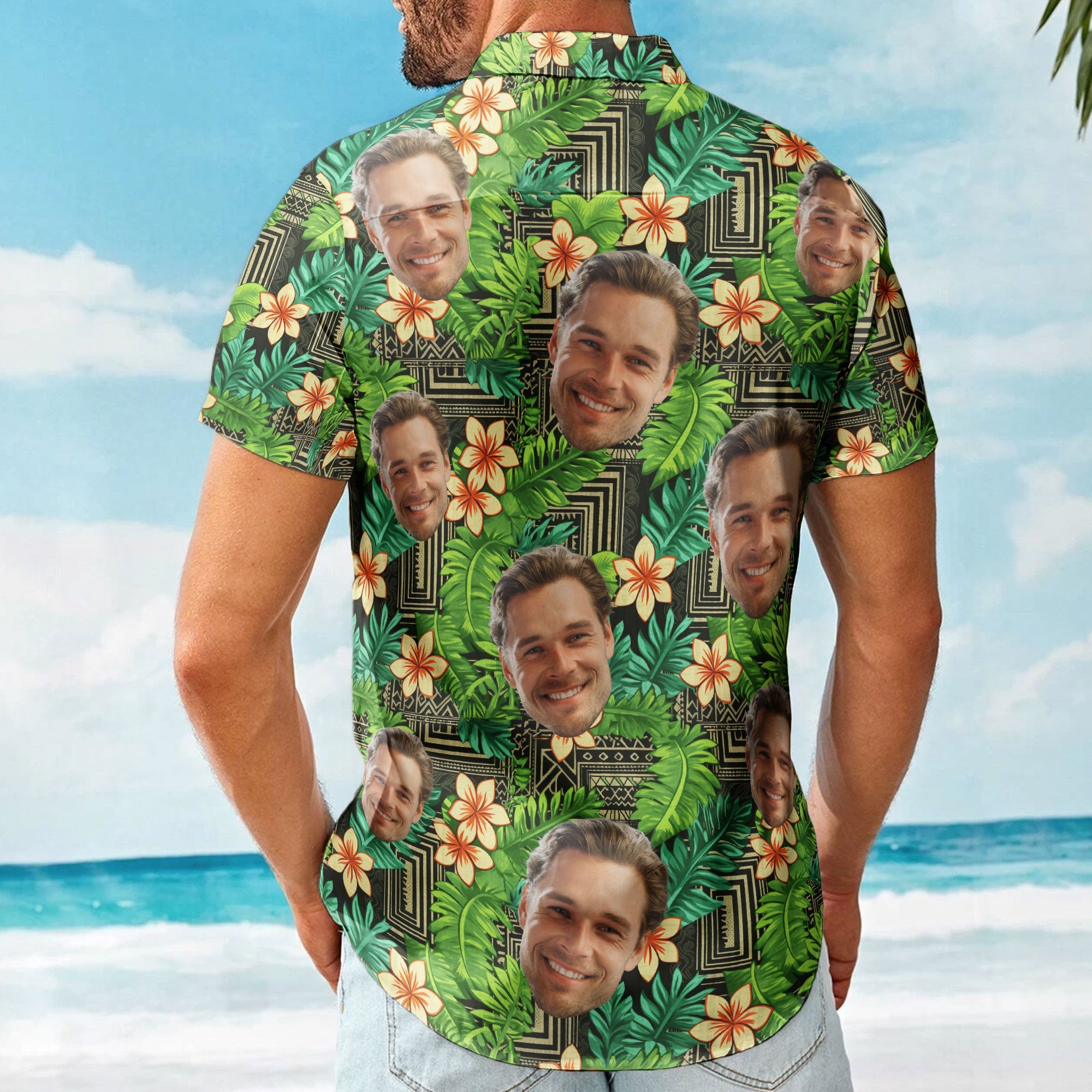 Introducing our custom Hawaiian shirts, a vibrant and personalized tribute to the spirit of Hawaii. This unique garment seamlessly combines tradition and modernity, featuring the iconic kapa pattern of Hawaii intertwined with a tropical motif that embodies the essence of paradise. What sets this shirt apart is the opportunity to make it truly one-of-a-kind – personalize it with a cherished face, whether it’s your dad, grandpa, or any loved one, creating a heartfelt and memorable gift.