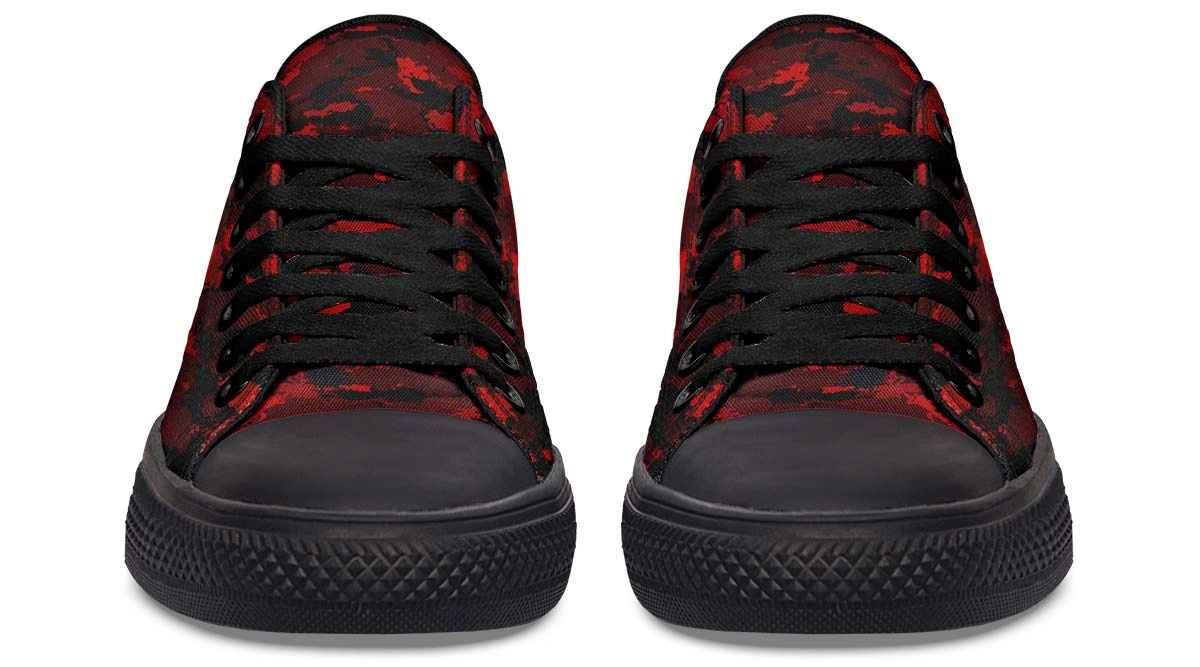 Stand out from the crowd with Red Camo White Low-Top Sneakers. Bold design meets everyday comfort for a striking look you will love. Perfect for any occasion.