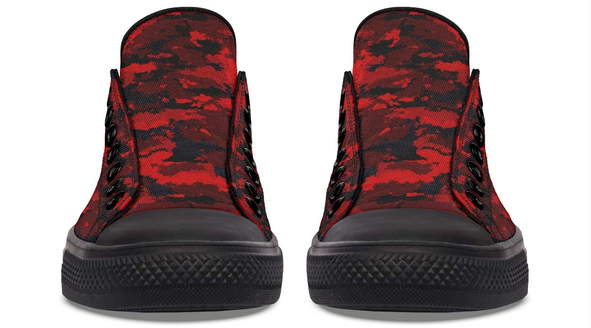 Capture attention with every step in the Red Camo Pattern White Low-Top Sneakers. These high-impact shoes pair a striking red camouflage print with a bright white base, delivering a fresh and energetic aesthetic. Perfect for trendsetters who want a statement look, these low-tops offer a cushioned interior and a sturdy outsole for all-day performance. From street festivals to casual hangouts, these red camo sneakers provide the perfect balance of eye-catching fashion and reliable functionality.